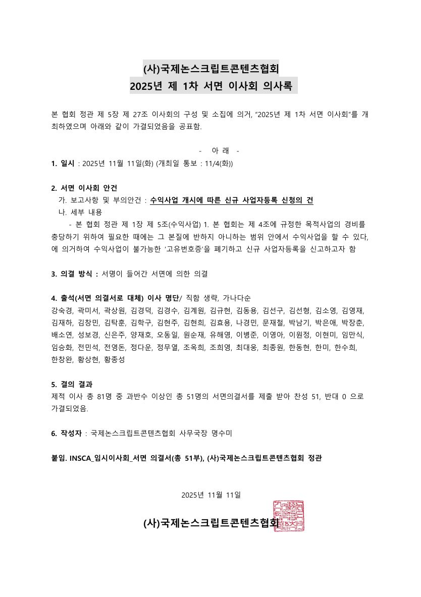 [2025년 제1회 임시 이사회] 서면 의결 의사록