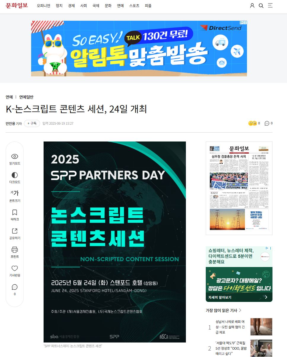 [문화일보] K-논스크립트 콘텐츠 세션, 24일 개최