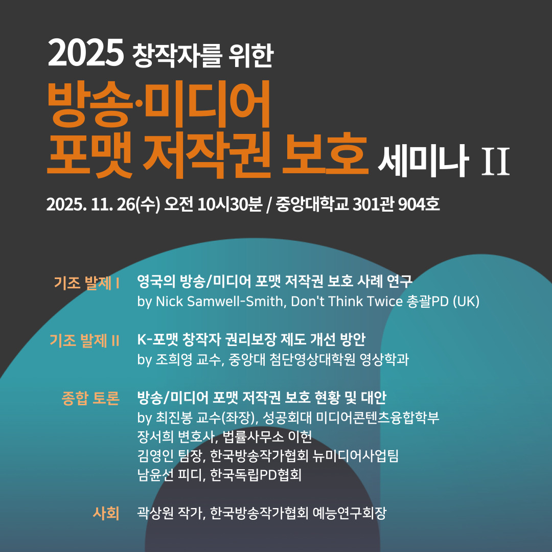 [세미나] 창작자를 위한 방송/미디어 포맷 저작권 보호 세미나 II / 25.11.26(수…