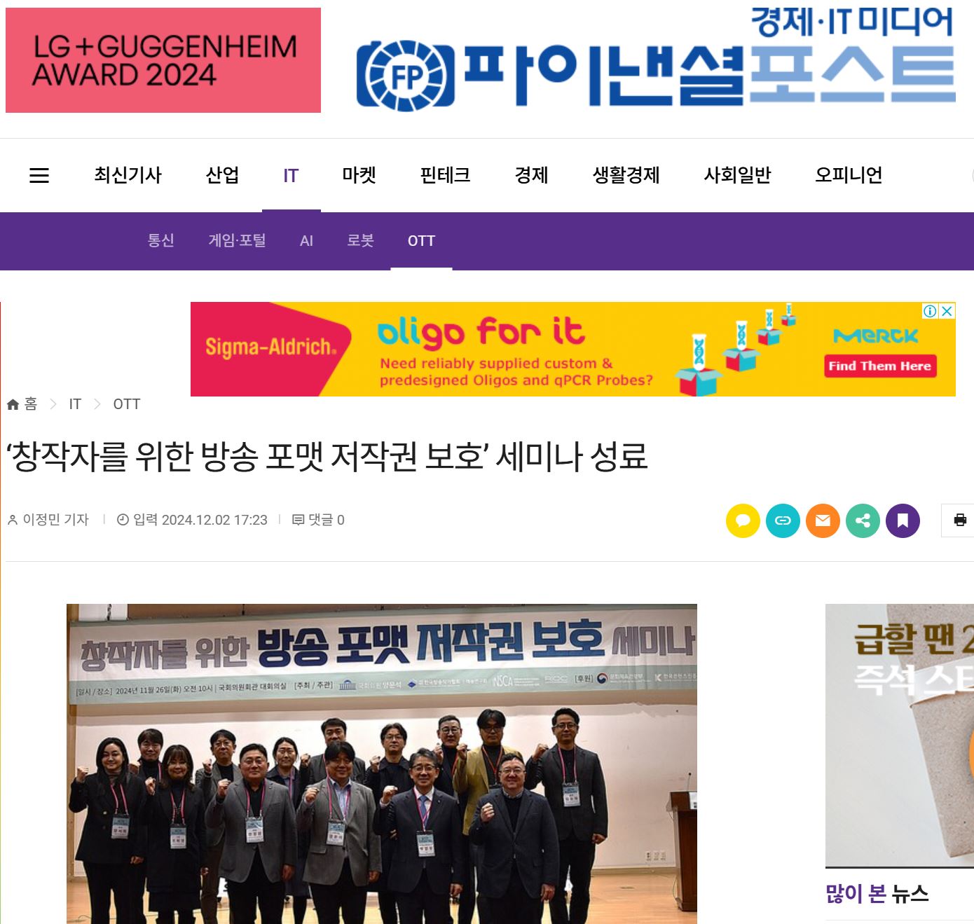 [파이낸셜포스트] 창작자를 위한 방송 포맷 저작권 세미나 열려